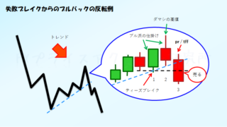 失敗ブレイクからのトレードという言葉は、ボルマン本(FX5分足スキャルピング)で登場する用語です。 意味はそのままで、「あるブレイクが失敗に終わったあとに仕掛けるトレード」のことです。 ボルマン本に限らず、ブルックス本(プライスアクショント...